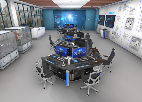 虚拟仿真集中实训室,交互显示系统可以提供虚拟环境供学习者实践训练,学习者也可以在虚拟场景中模拟操练、协同演练,提高技能和应对复杂情况的能力。