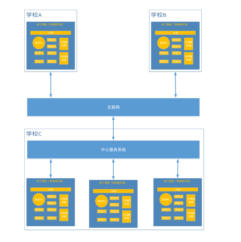 智慧课堂可以实现校内多个智慧课堂的协同教学,一名教师授课,一个或多个课堂同时参与学习,多终端同步进行。