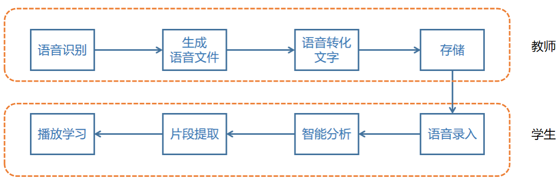 学生根据学习需要给出语音指令,调取教师授课中的片段,自主观看学习。实现常态化课程教学内容全纪录,实现教学资源的智能化积累与使用。