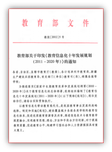 教育部关于印发【2012】15号(教育信息化十年发展规划(2011-2020年))通知,就要求