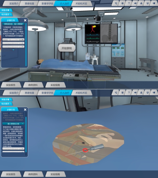 对此,恒点与东南大学以临床病例数据库为支撑,共同设计开发了肝癌诊疗一体化的“基于影像技术的肝癌诊断与介入治疗虚拟仿真”实验。