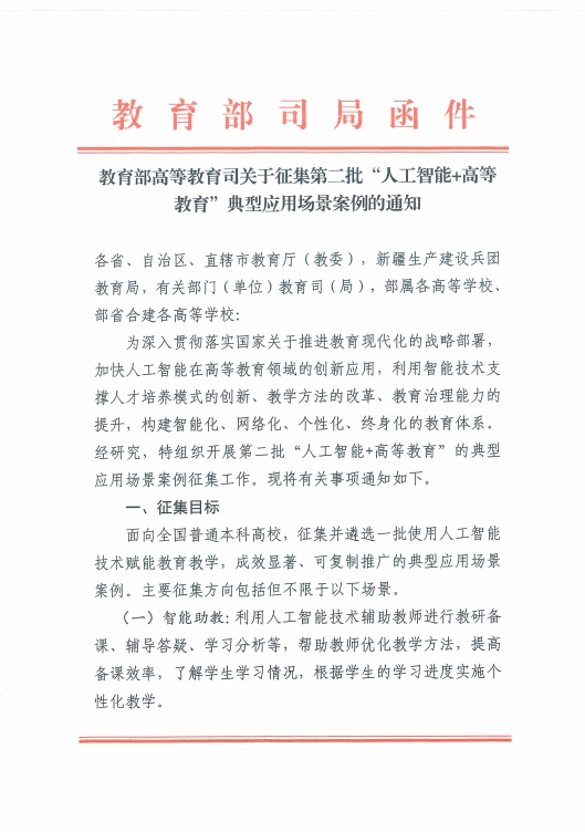 教育部关于征集第二批“人工智能+高等教育”典型案例的解决方案