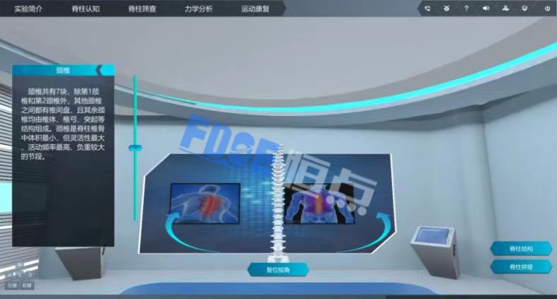 基于以上原因,依据“能实不虚、虚实结合、相互补充”的原则,将虚拟仿真技术融入到人体运动解剖实验教学中。虚拟运动实训教学软件利用先进的虚拟现实技术,将复杂的人体运动解剖结构以生动、直观的方式呈现给学生。使其更直观的了解人体运动结构的形态、功能和基本力学规律。通过线上虚拟交互理解与线下模拟实践相结合的方式,使学生近距离、全视角、多维度来认识人体运动解剖结构,加强了理论和实践的双重学习体验。