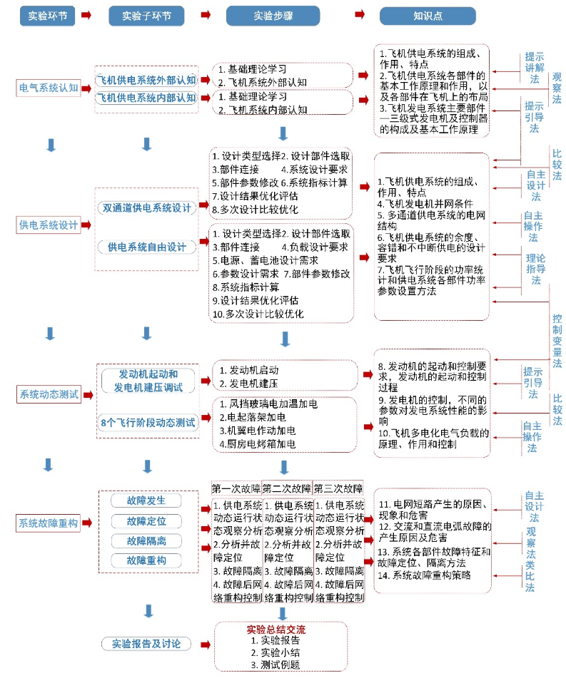 为培养学生爱岗敬业的精神和航空报国的情怀,本实验设计了系统认知、系统设计、动态测试和故障重构四个环节: