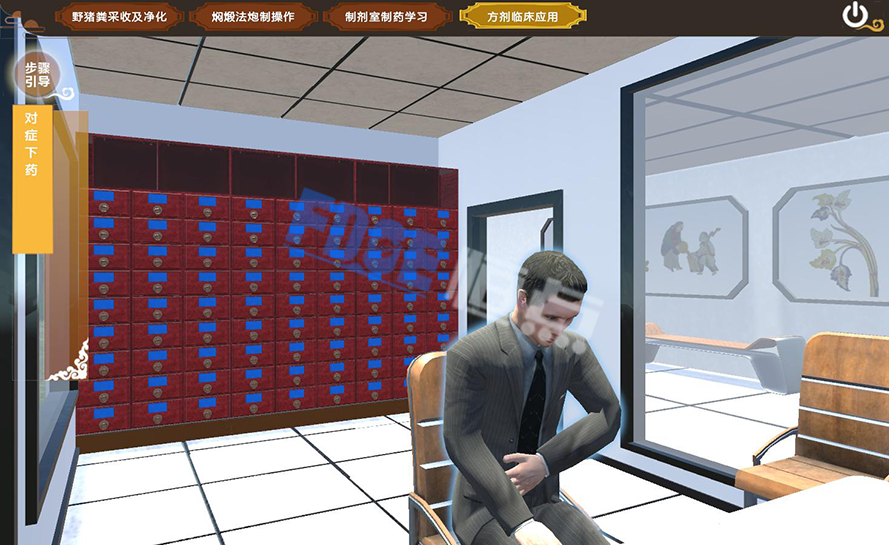 中药制剂虚拟仿真实训教学系统则分别模拟了中药材的提取、浓缩、制剂生产等关键步骤,并通过虚拟仿真项目训练的形式,使学生在计算机中模拟各项实验操作。