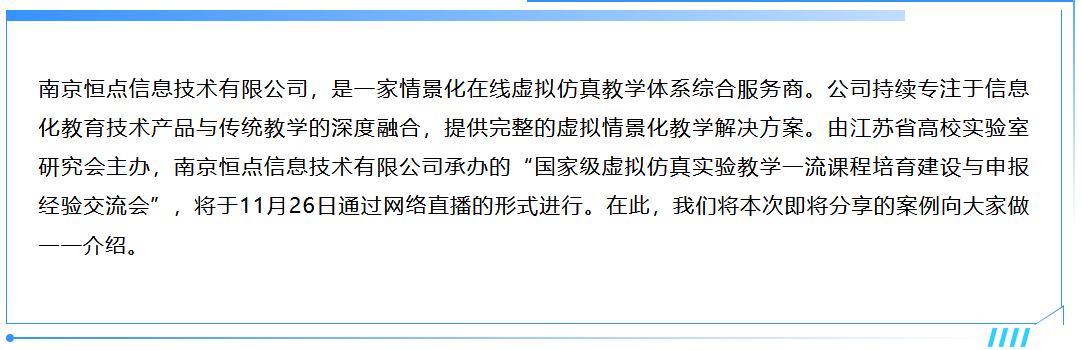 本次会议由原南京大学实验室与设备管理处处长、江苏省高校实验室研究会副理事长兼秘书长胡凯处长主持,会议旨在结合国家虚拟仿真实验教学项目建设与申报的工作,促进虚拟仿真实验教学项目与一流课程的建设与应用。