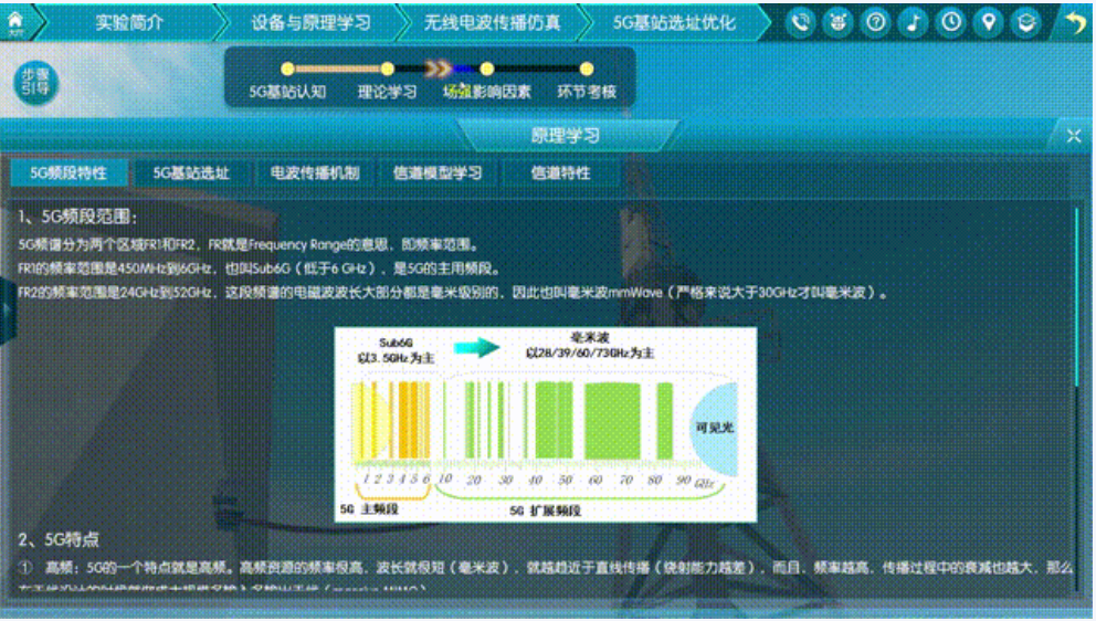 1. 通过5G基站选址系统的认知学习模块,帮助学生了解和掌握5G基站的基本组成和原理,提高学生对无线网络优化设计知识点的理解能力。