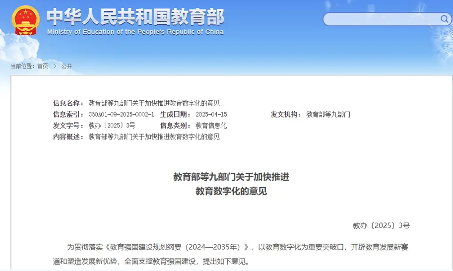 近日,教育部等九部门印发《关于加快推进教育数字化的意见》,《意见》指出,将人工智能技术融入教育教学全要素全过程,建设“通用+特色”高校人工智能通识课程,建设一批高校智慧课程,鼓励开设人工智能特色课程。通过智能学伴、数字导师等探索人机协同教学新模式,实现人工智能驱动的大规模因材施教,提高教育教学效率和质量。