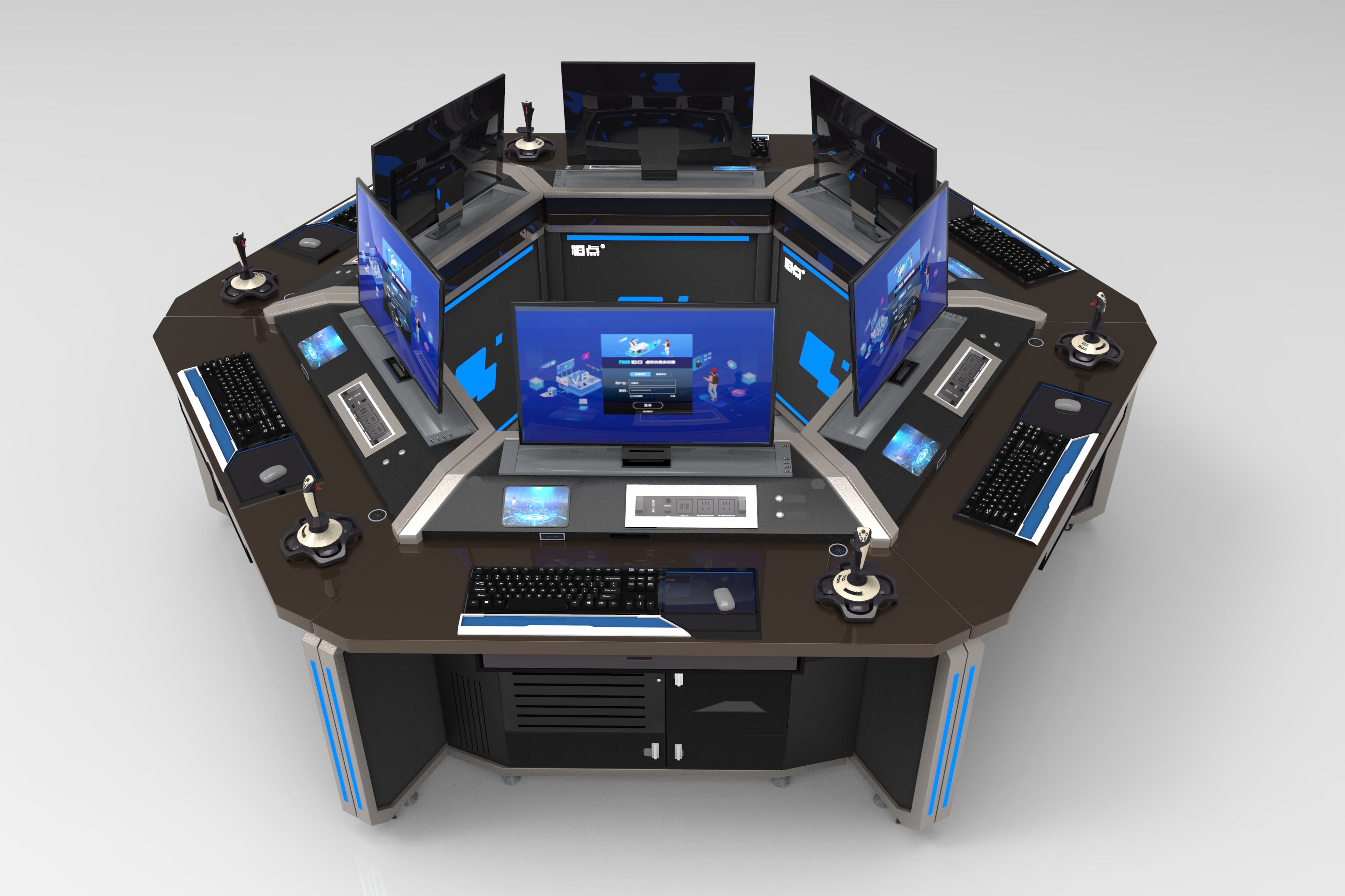 工作站支持单体单人操作,也可快速拼装六人小组;支持快速构建虚拟协同小组;工作站操作管理系统支持虚拟仿真资源管理、打开应用、切换项目、模拟键盘鼠标输入、控制应用程序、一键控制设备关机、调整系统设置。