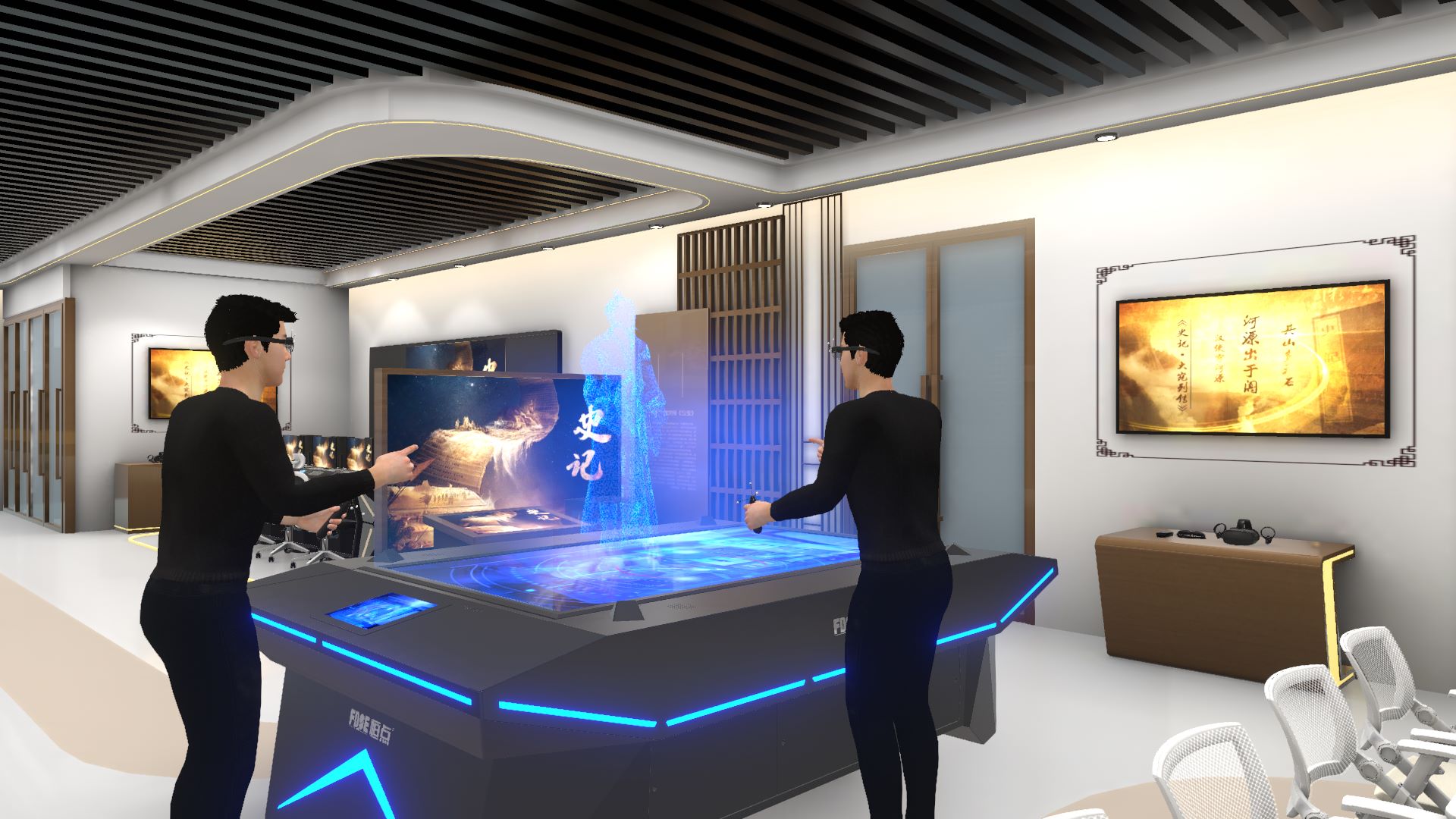 全息中文学习交流环境模拟推演平台能够与信息化教室、虚拟仿真实训室和科技研创中心等环境风格高度融合,打造全球中文全息教育实践空间。