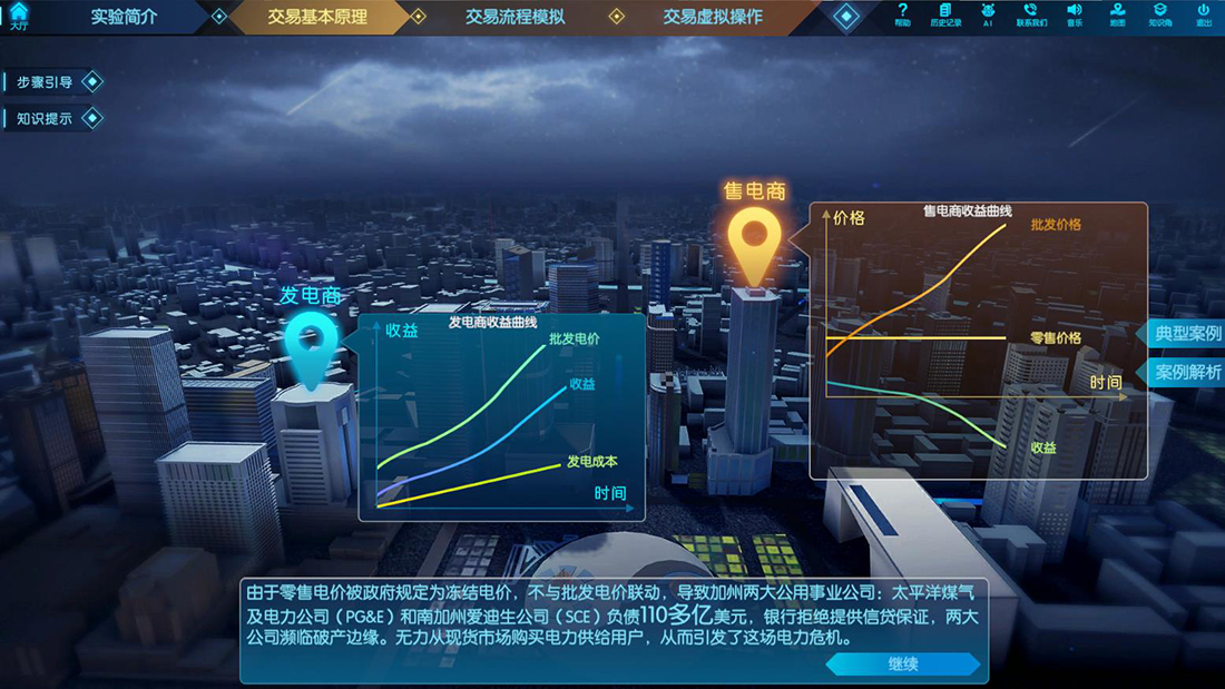 虚拟仿真实验不仅提供了逼真的交易环境,还具备强大的教学功能。通过典型案例引入,帮助学生快速理解电力市场交易的基本原理和流程。同时,实验平台提供了丰富的学习资源,学生可以在实验前通过自主学习掌握相关知识,为实验操作做好充分准备。