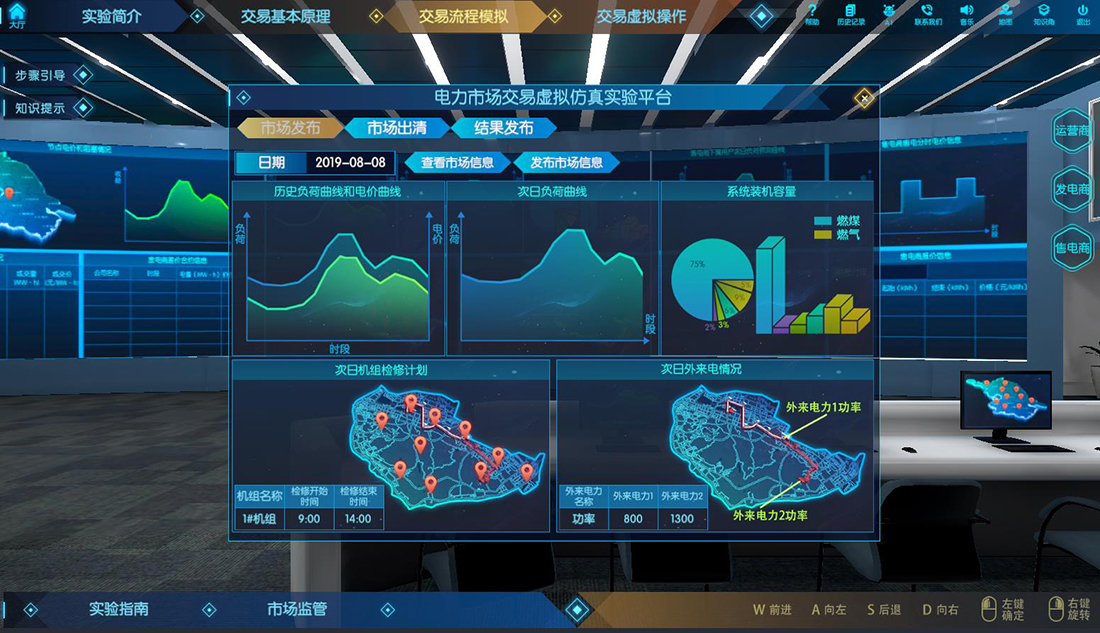 该实验以实际电力市场交易为蓝本,高度还原了市场交易的各个环节,包括市场发布、市场申报、市场出清、结果发布等。学生可以在虚拟环境中扮演发电商和售电商的角色,进行虚拟报价操作,体验真实的市场交易过程。