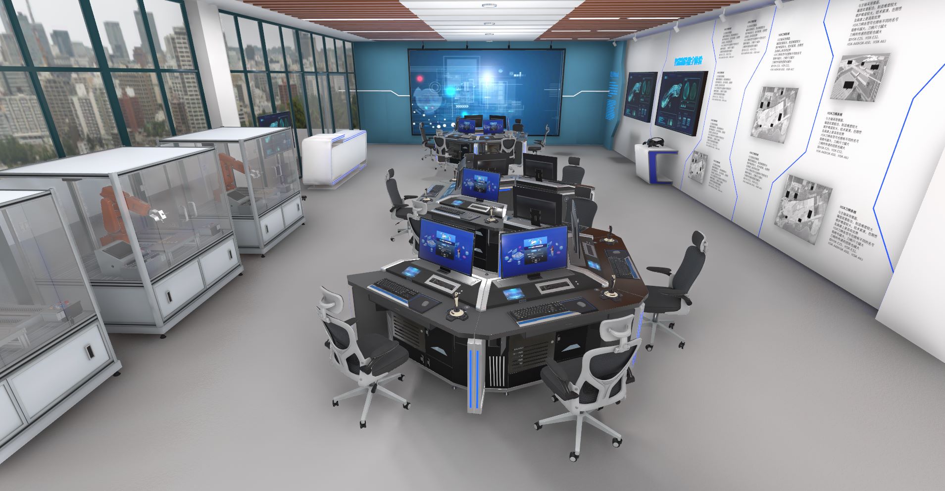 恒点建设的虚拟仿真实训基地依托3D建模、VR/AR/MR、人工智能等前沿技术,结合XR数字融合工作站、MR智能互动沙盘、红外大空间协同交互系统、MR大空间协同协同等虚拟仿真硬件设备,能够构建高度仿真的虚拟场景与实体设备联动的实训环境。