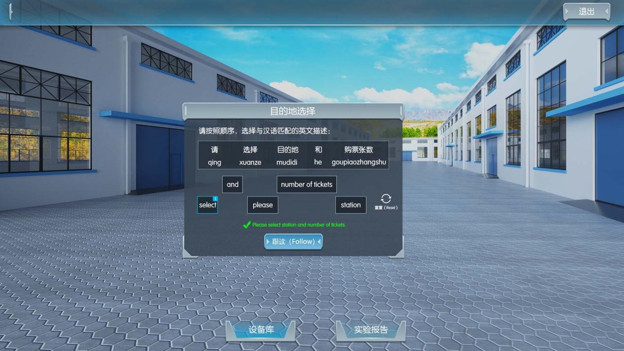 《地铁购票情景语言教学虚拟仿真实验》学生可进行多次试验,系统存储学生最新的实验记录。并通过人工智能评测系统从键词评测、文本语义对比分析、音频文字转写对比,并从准确度、流利度、完整度等多个维度对学生的口语及文本实训进行综合评测和打分,最终为每位学生形成“学习档案”。