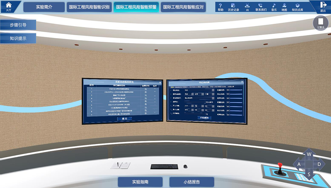通过虚拟仿真实验,培养学生的国际化视野,使其树立扎根专业、全球领先的远大理想信念。在思想的引领下,塑造学生运用国际工程风险管理理论解决国际工程管理现实问题的思维与意识,充分锻炼学生在管理决策建模和国际工程管理过程设计方面的创新能力,帮助学生深度挖掘管理问题和精准定位解决方案。通过国际工程情景再现,使学生了解国际环境并理解中国企业面临的国际化挑战,加强培养学生的创新意识、合作心态、职业道德,并理解智能化技术在国际工程风险管理中的发展方向和意义,提升学生学以致用、科学决策、合理管控的综合素质。