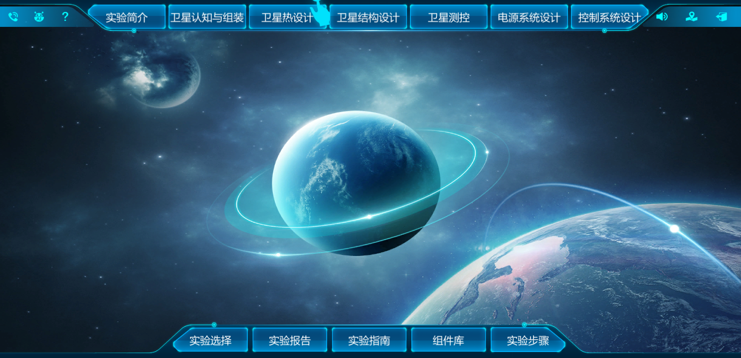 卫星设计及测控是集机械、通信、电子及控制系统于一体的大型复杂工程,本实验以微纳卫星作为仿真对象,通过虚拟仿真教学实验使学生掌握如下内容: