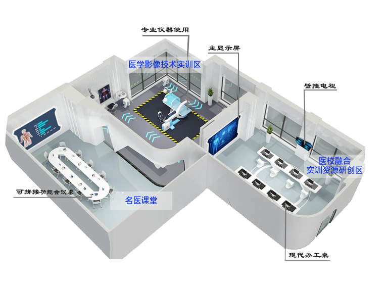 医学影像虚拟仿真实训室需要具备一定的硬件设施条件,包括虚拟仿真实训操作台、VR头戴设备、AR头显、3D交互式显示大屏等。这些硬件设施需要满足高精度、高稳定性和高可靠性要求,以便更好地实现医学影像技术虚拟仿真实训效果。