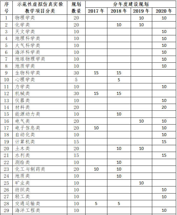2017—2020年示范性虚拟仿真实验教学项目建设规划