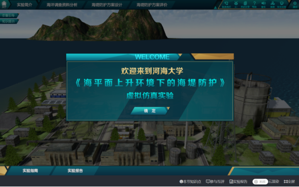 针对上述痛点,恒点与河海大学共同设计开发了“海平面上升环境下的海堤防护虚拟仿真实验”,运用虚拟仿真技术,对真实环境进行高度还原与模拟,为实验与教学难题提供了解决方案。