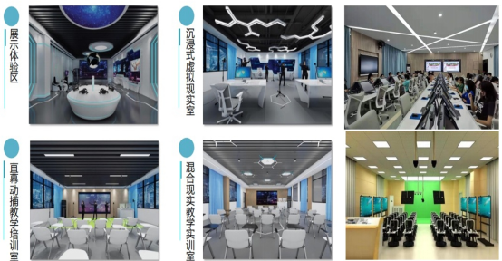 具体到在虚拟仿真实训场景的搭建方面,可以多引入和使用高科技硬件、高智能软件和丰富的教育资源。并且以学生为中心,适应多种不同类型的课堂,不同类型的学习活动。同时增强人机互动、学生之间互动、师生互动;情境式、探究式教学,小组合作学习。突破传统教室讲台与课桌椅的空间设计,可灵活组合,便于交流讨论。