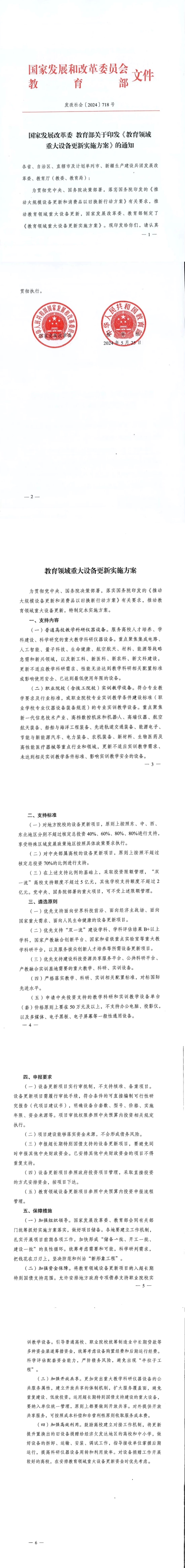 为贯彻党中央、国务院决策部署,落实国务院印发的《推动大规模设备更新和消费品以旧换新行动方案》有关要求,推动教育领域重大设备更新,国家发展改革委、教育部制定并印发《教育领域重大设备更新实施方案》。