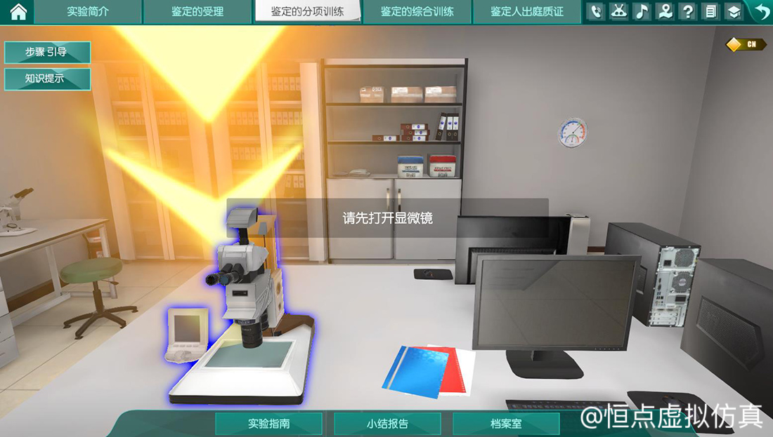 该系统将最新的司法鉴定技术和方法融入教学内容,建设全面虚拟仿真实验室,确保教学内容的前沿性和实用性,并以虚拟操作弥补实体模拟资源不足、试错及维护成本高昂等问题,让学生在安全的虚拟环境中进行实践操作。