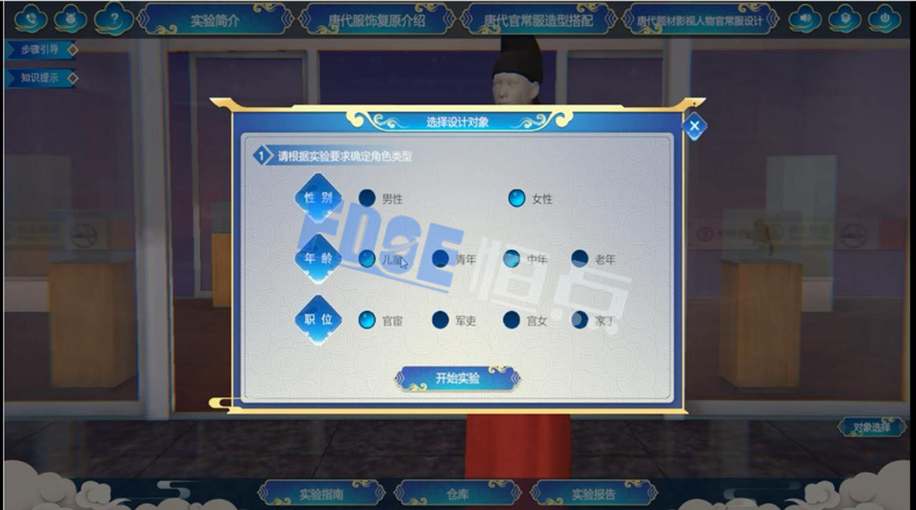 在这样的背景下,恒点与西安工程大学、马冬教授团队合作开发的“唐代题材影视人物官常服设计虚拟仿真实验”项目应运而生,以实物资料为佐证,通过通过影像数据采集等现代科技手段,对唐代服饰文化进行保护、传承和创新。