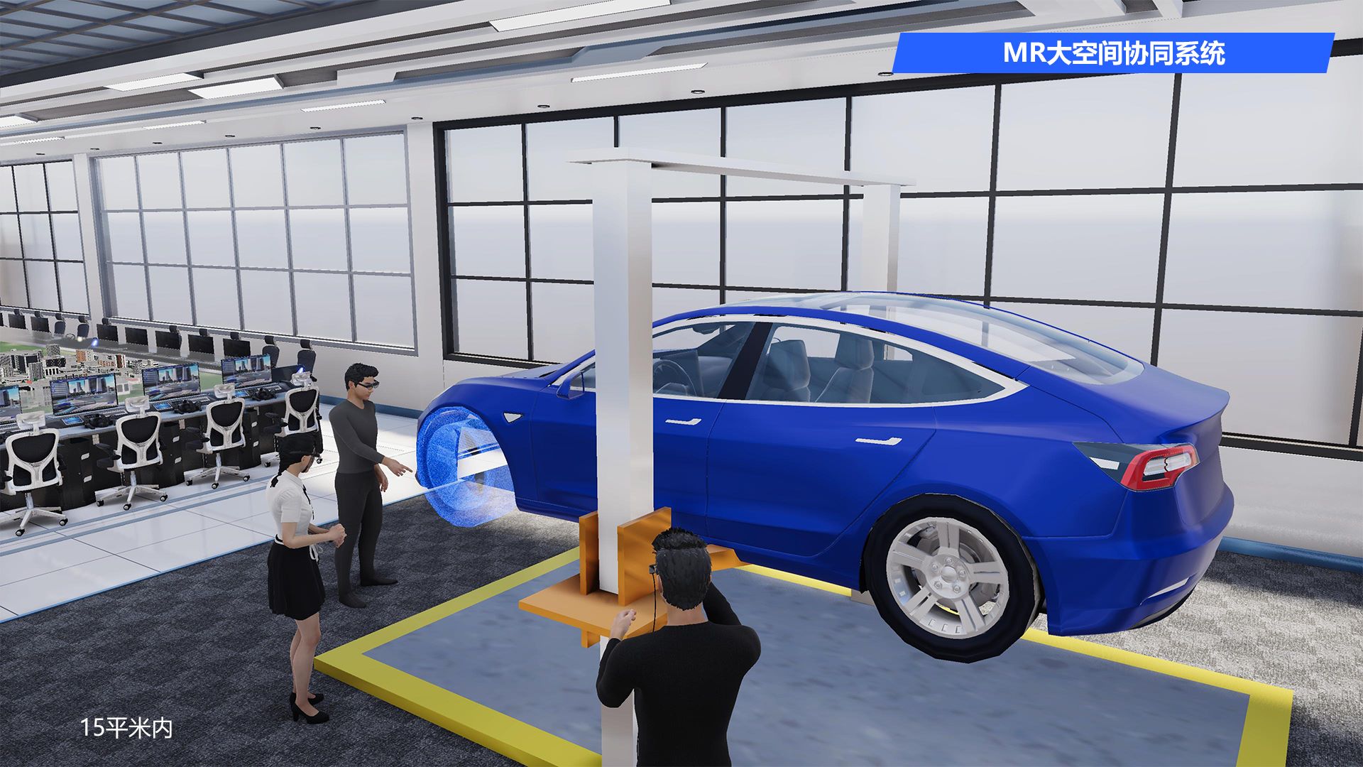 MR大空间协同系统可以在有限的空间中呈现无限的世界。体验者置身于设备房间中,乍看空无一物,但头戴显示设备(MR智能眼镜和VR虚拟现实眼镜)能在真实空间中呈现各种各样的虚拟场景和物体。体验者在逼真的模拟环境中获得更自由的人机互动、虚实融合的沉浸式体验,提升现场实操、应变能力与多人协同水平。