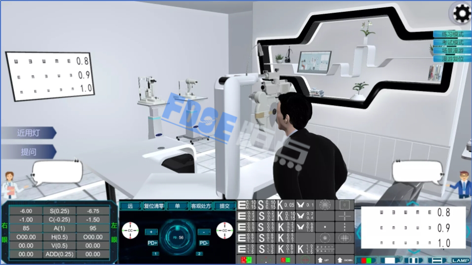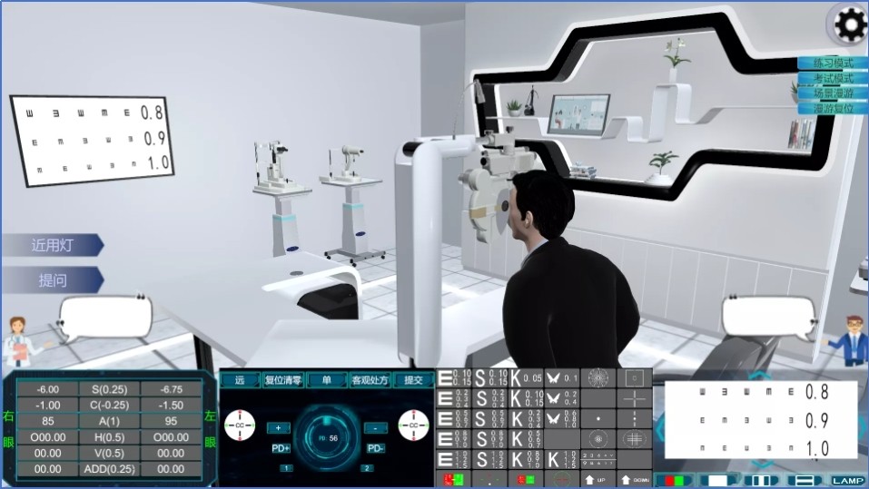 眼视光虚拟仿真实训基地,集成了最新的虚拟现实(VR)与高精度仿真技术,旨在为眼科专业学生及验光师提供一个无风险、高效能的实践平台。该基地通过构建逼真的眼部模型与验光场景,使学员能够身临其境地体验从初步检查到精确配镜的全过程。