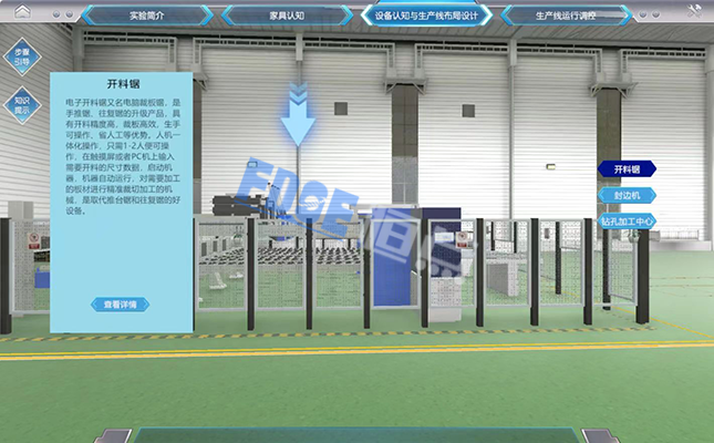 在家具设计制造虚拟仿真实验教学平台中,实验者可以像在真实环境中一样完成定制家具生产线的设计、规划、设备选型、搭建、工艺参数设置、生产操作等各种环节。通过交互式仿真实验操作,学生可以学习掌握定制家具生产工艺流程、定制家具加工设备组成与生产线搭建;关键生产设备运行参数设置;定制家具智能生产线设备选型及布局;定制家具智能生产线仿真运行等。