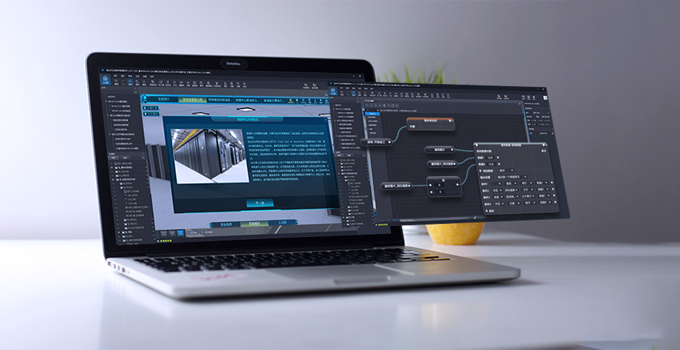 恒点还开发出独特的“XR交互-资源开发编辑器”,以实现教学资源的“授人以渔”。其基于零编程、流程化、模块化理念设计,兼容主流硬件设备,可以用于实验室与实训基地的配套课程开发,并允许协同编辑、共同创作,为优质虚拟仿真资源的建设与共享提供了低成本、高效率、系统化的解决方案。