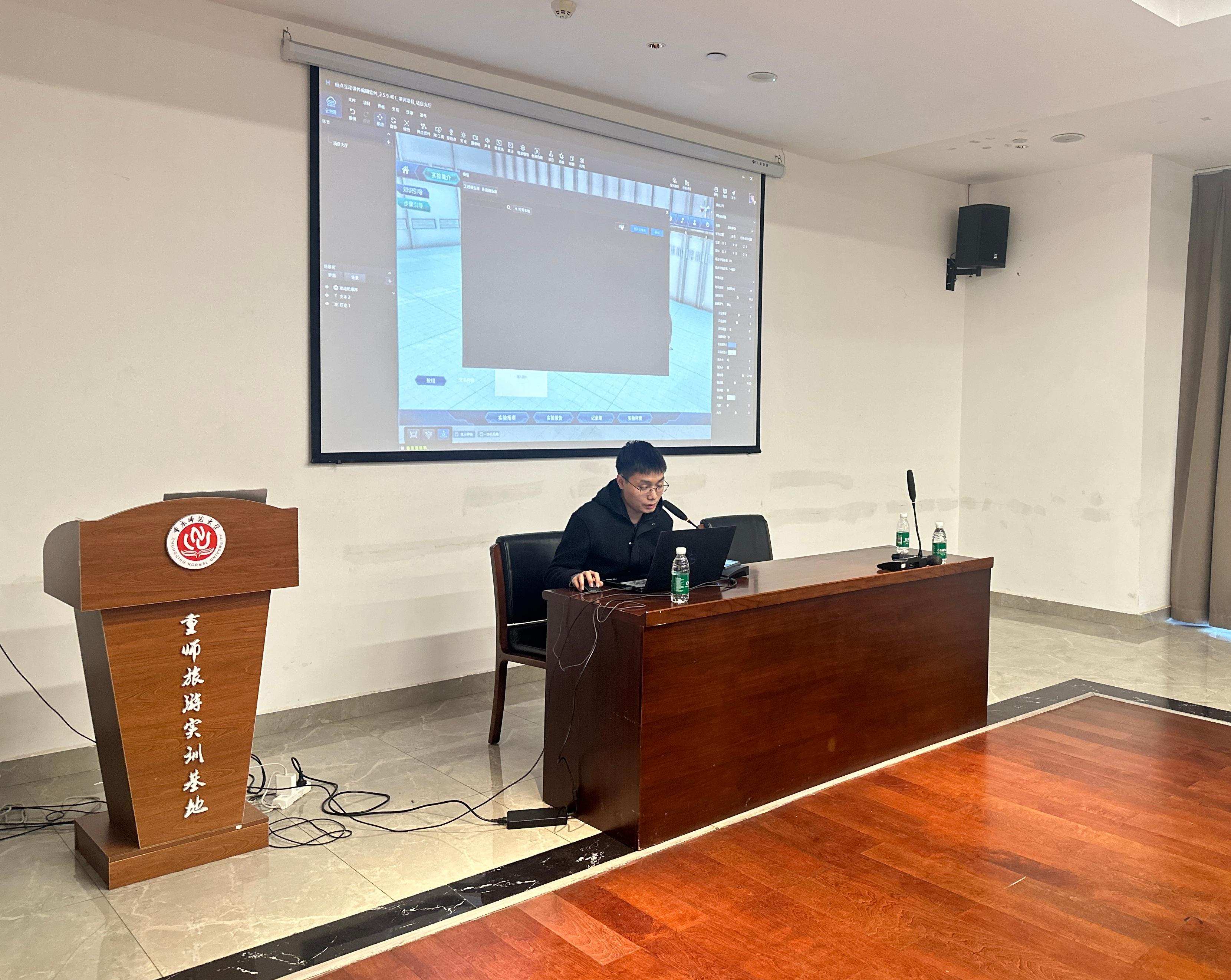 恒点数字资源部研发专家李伟豪,给培训学员进行了《虚拟仿真编辑工具基础技术训练》项目教学,指导学员如何使用VRC-Editor编辑器进行虚拟仿真课程设计与开发。