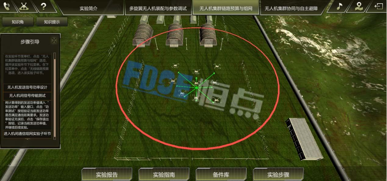 通过虚拟仿真实验,使学生掌握多旋翼无人机装配与参数调试、无人机集群链路预算与组网、无人机集群协同与自主避障相关的技术原理和实验方法。