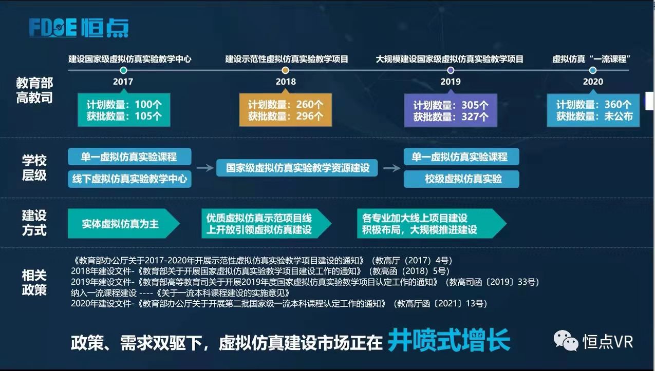 1、随着教育部关于高校虚拟仿真建设政策的不断深入推进,虚拟仿真项目建设的普及需求越来越多;