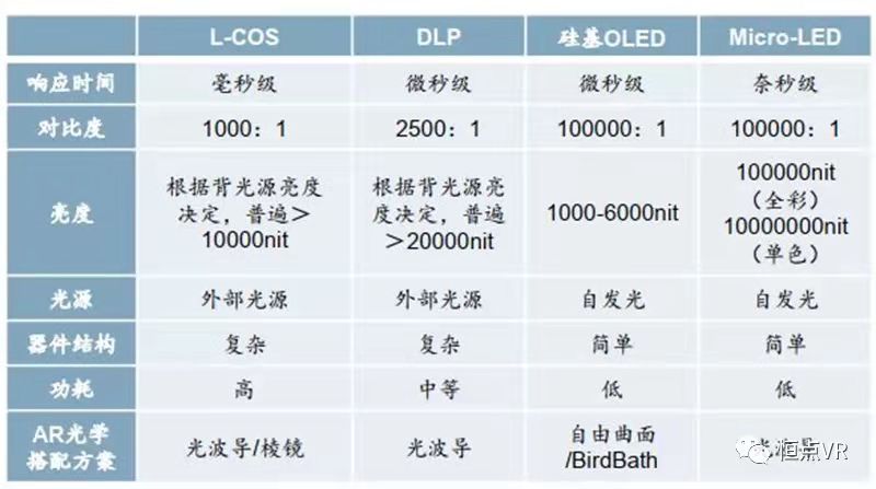AR眼镜的光学系统由图像源器件与显示镜面两个主要配件构成,目前的搭配方案包括LCOS+光波导、DLP+光波导、硅基OLED+自由曲面等,市面上多种解决方案同时存在。光波导是目前最佳的增强现实眼镜方案,具有大视场和大眼动范围的优势。