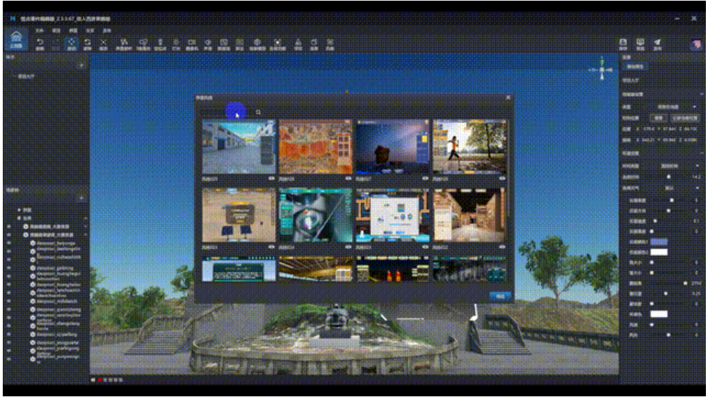 通过逻辑编辑,实现点击地图中的景点后,在实际场景中切换到相应景点位置,进行景点游览。