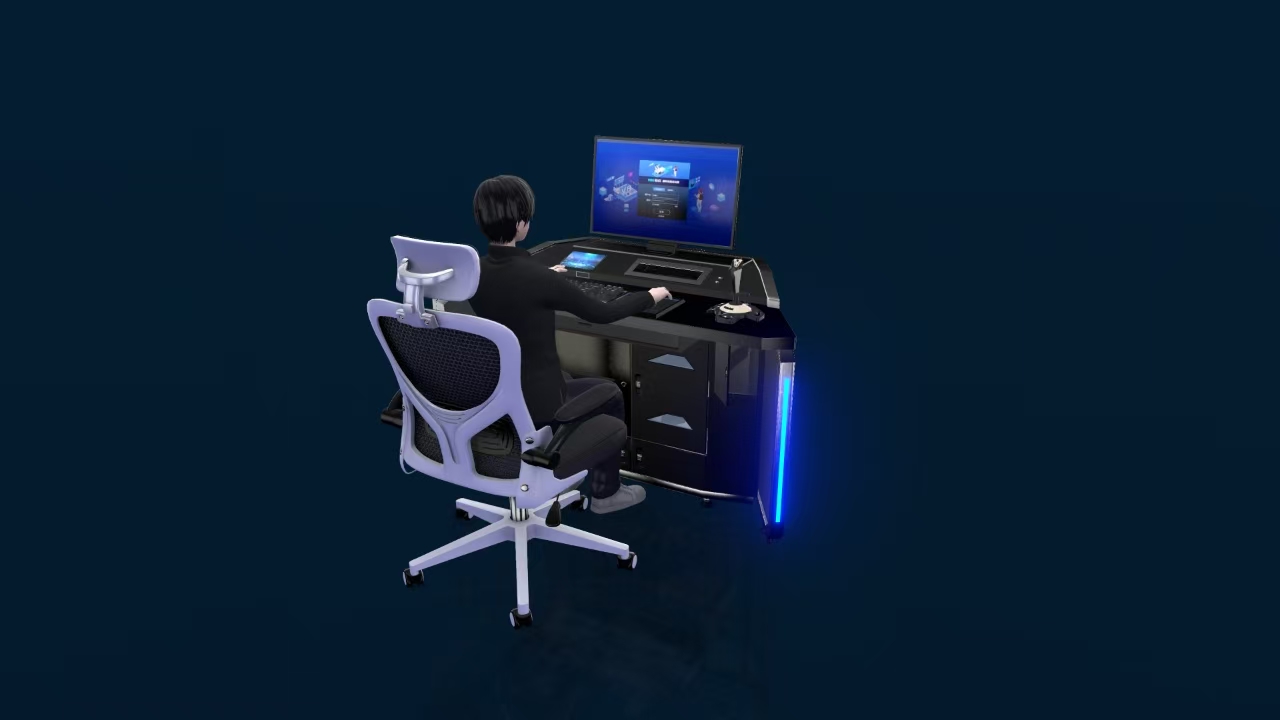 工作站集成 PC/VR/AR/MR装置为用户提供一体化工作站,具有单排,面对面双排等多种拼接方式,支持单体一人操作,组合体多人协作操作,组合体多人独立操作。