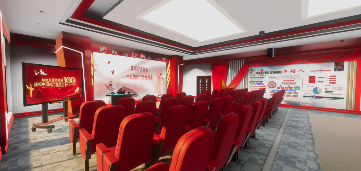 恒点创新性运用虚拟仿真技术,推出思政与党建教学与体验中心,将生硬的理论知识转化为生动场景和互动内容,便于理解和记忆。沉浸式的思政课程,例如虚拟参观红色文化场馆、模拟历史事件场景等,将虚拟元素与现实教学环境相融合,增强互动性,从而提高学生学习积极性和参与度,提升教学质量,更好地实现思政实践育人的教学目标。