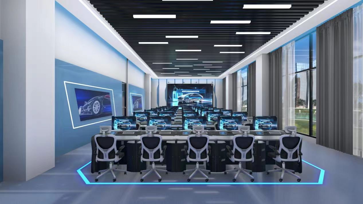 本区域配备新能源汽车虚拟仿真编辑工作站及系统、研讨体验大屏、成果多终端调试系统。兼具实验教学与内容开发两种功能。一方面承担各专业虚拟仿真教学职责,另一方面能培养在相关学科中具备虚拟现实内容开发能力的优质人才。并且可以结合人工智能、大数据等技术,对教学资源进行智能化管理和优化,为创新教学模式和方法提供支撑,推动虚拟仿真技术在教学中的深度应用。