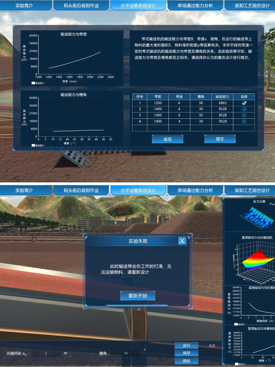 例如,在《矿石码头装卸工艺优化设计虚拟仿真实验》中,学生在实验结束后,会有一个自己设计的工程方案,系统需要从经济、环保、社会、能效、时效、安全等很多维度进行方案评价,老师在对学生实验进行评价的时候,需要配合很多算法,评价较为吃力。