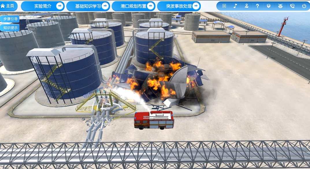 沙盘基于数字孪生、3D可视化与智能算法,能够真实还原港口作业场景,支持物流调度优化、多人协同决策与多维度动态推演。以恒点为河海大学开发的《危化品港口规划与布置虚拟仿真》为例,学生可以在沙盘学习港口布局相关知识、构建真实港口结构、协同设计港口合理布局。