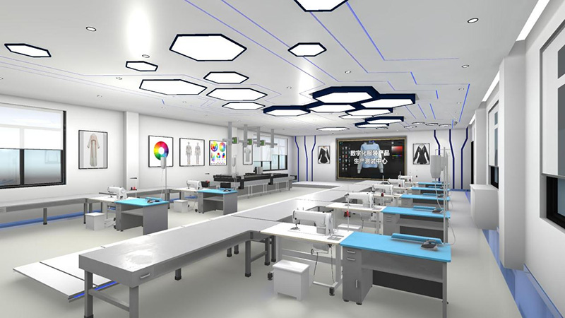 具有知识理论教学教室、实训同步教学系统、服装产品研发系统三大功能特点,是集服装知识理论教授、实践操作、科研研发于一体的学生实战场所,专业技能真正实现了“教、学、做”一体化拓展性学习。