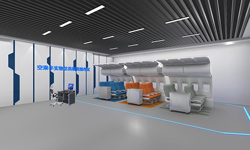 空乘地勤虚拟仿真专业实训中心依托特色的空中乘务专业群,包含空乘地勤虚拟实训区域、空乘地勤半实物仿真模拟操作区两个区域。