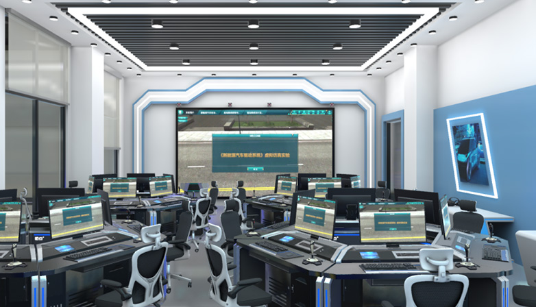 本区域配备XR数字工作站,学生能够在电脑上进行虚拟仿真实训软件进行虚拟操作,同时配备虚拟现实(VR)、混合现实(MR)设备,支持新能源汽车驱动系统虚拟仿真实训。