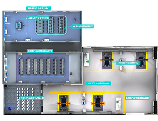 新能源汽车虚实结合实训基地主要由三个部分组成: