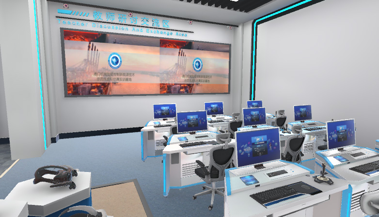 立足当前主流的教学需求,利用传统的LED大屏和电脑开展授课,正常满足一个班级的同步教学,支持直播课和录播课上课,并能延伸VR和MR的全新的教学形式;结合最新的虚拟现实技术和设备,把难以在课堂开展的实训环节构建出来,不仅可以提供沉浸式的体验,还可以实现多人协同的互动。