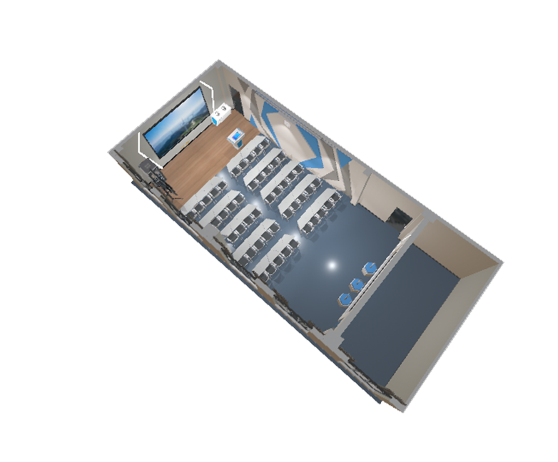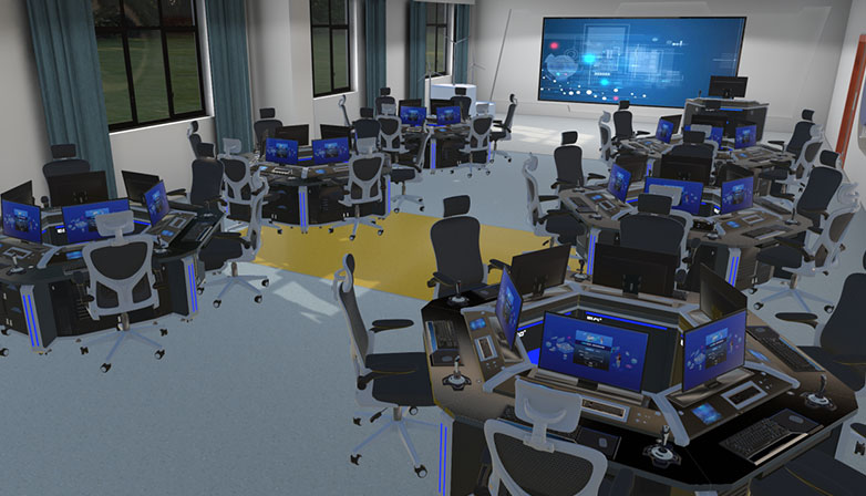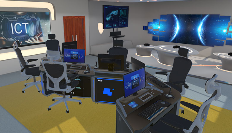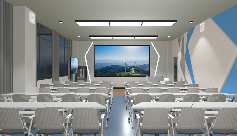 风力发电理论教学区主要是现实无法开展的虚拟实训项目进行集中的虚拟训练,将虚拟资源引入课堂教学。课中教室操作大屏互动讲解,教师可以点名学生与其协同互动;立足当前主流的教学需求,利用3D-LED大屏和XR数字融合工作站开展授课。