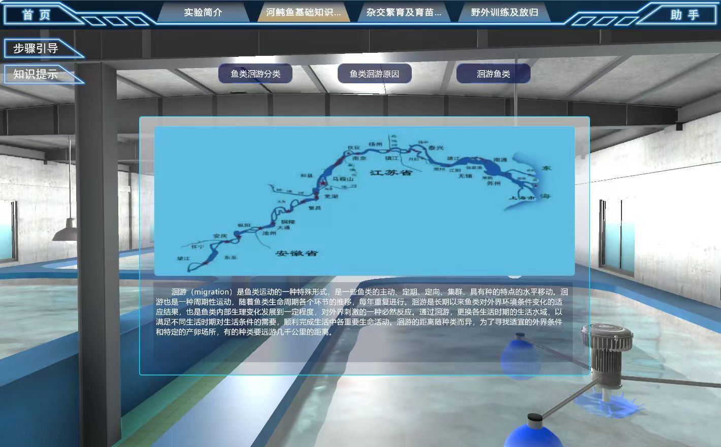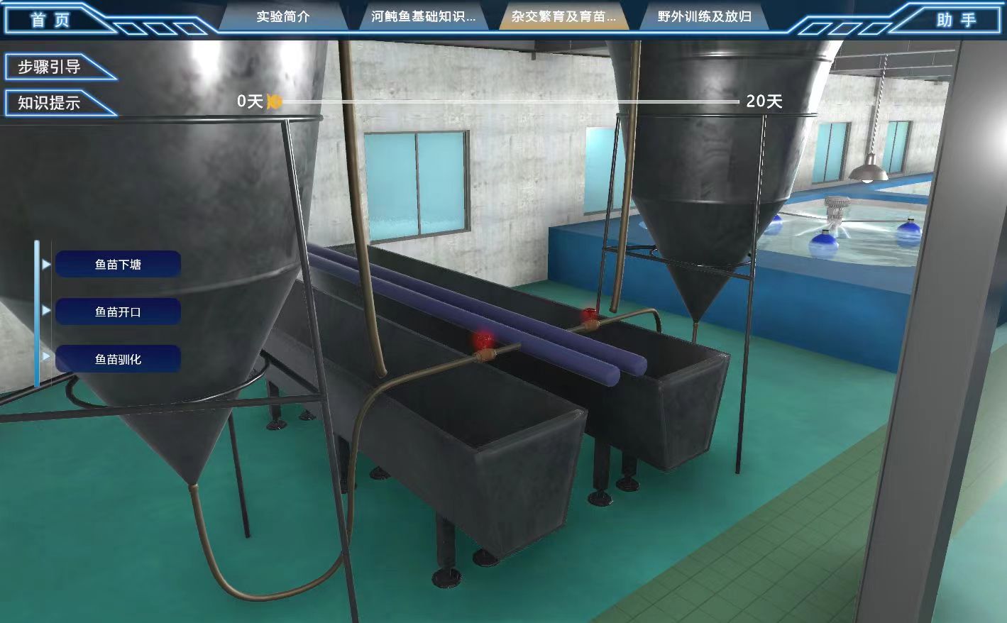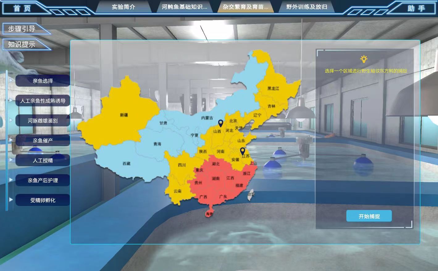 海洋鱼类的人工繁育和养殖是海洋渔业资源开发利用的重要形式。然而,受到鱼类繁育时间和养殖场地的限制,海洋鱼类繁育的知识点通常仅限于课堂理论教学,难以在实验课程和短期的实践教学中开展技术培训和科研创新,无法实现知识的应用转化。开发虚拟仿真实验,突破时空限制,让学生在有限时间内全面了解和掌握海洋鱼类的基本养殖和繁育过程,有利于实现理论教学与实际应用的紧密结合,为海洋渔业资源开发利用培养创新技术人才。