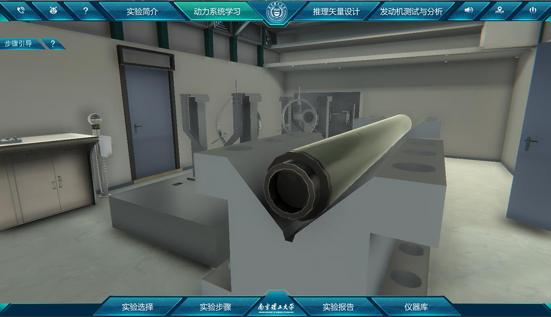 固体火箭发动机推力矢量虚拟仿真实验的目的是检验使用燃气舵控制固体火箭发动机推力矢量的导弹动力装置的性能,针对实验结果对固体火箭发动机及燃气舵的性能进行改进设计,一般遵循“理论设计—结构设计—性能试验”这一反复迭代过程。在实验过程中,涉及到火炸药、固体推进剂等危爆物品,实验所需的场地大、安全保障措施严格,实验成本极高,准备及实验过程甚为危险且消耗大量的实践,传统的实验教学以演示为主,学生无法实际准备相关实验、制备危爆实验零部件,更无法操作相关的大型实验设备,无法提升学生动手实践的水平,达不到实践教学的目的。本项目以了解固体火箭发动机设计及其推力矢量控制原理为基础,掌握固体火箭发动机及燃气舵设计的方法,了解结构参数对发动机及燃气舵的性能的影响。通过虚拟仿真实验教学,掌握固体火箭发动机推压力高精度测量以及固体火箭发动机推力矢量的试验方法、步骤及测试测量仪器设备的使用。通过对推力矢量控制燃气舵的固体火箭发动机的设计,对带有燃气舵的固体火箭发动机的推力、压力及推力矢量特性进行实践教学,有利于学生领会先进动力装置及其控制方式的设计方法,领会数字化设计及实验的思想,完全模拟带矢量控制的固体火箭发动机的设计过程,加深对专业知识的认知。在提高学生动手实践水平的同时,提升学生安全操作、安全生产及安全试验的意识。为此,本虚拟仿真实验系统针对火箭武器系统学习难点问题,设计三个模块的教学内容。首先,基于使用目的完成固体火箭发动机的设计。然后,基于机动要求完成燃气舵设计。接着,对设计完成的固体火箭发动机在高精度台上完成发动机燃烧室压力及总推力的测量,对发动机的总体性能及安全性加以评估。最后,将配备燃气舵的固体火箭发动机安装在六分力试验台上,对固体火箭发动机燃气舵的操作特性以及对推力矢量的影响进行系统测量。
