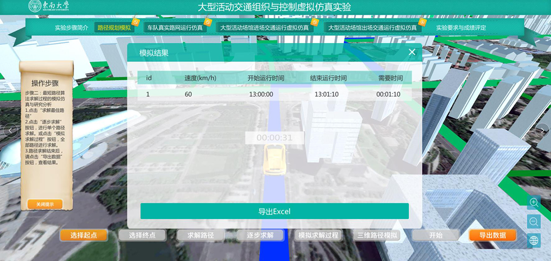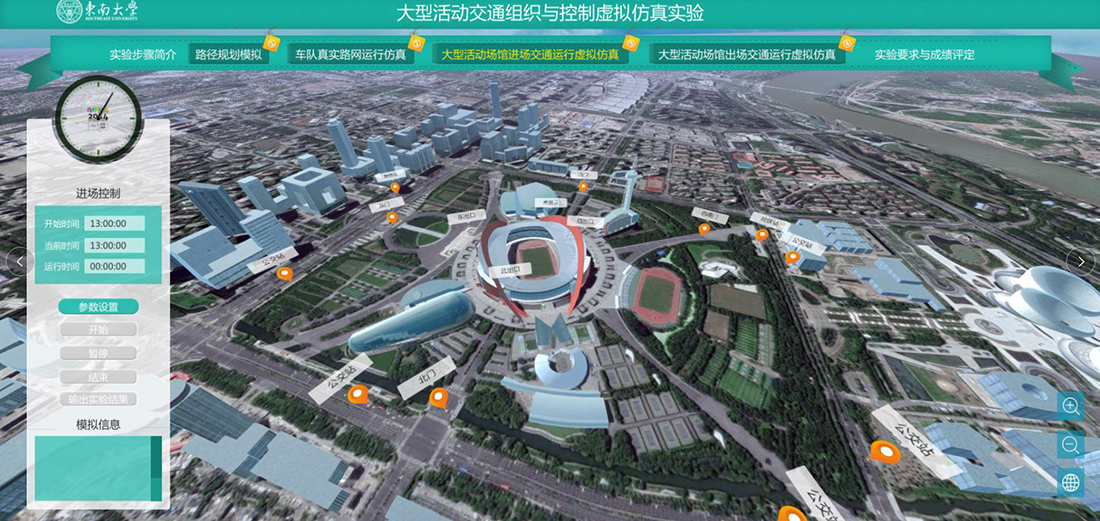 本项目以全国排名第一的东南大学交通运输工程一级学科师资团队为主体,基于承担的“第十届、十一届全国运动会,以及南京市2015年青奥会开幕式交通组织”等实际案例成果,依托国家级道路交通工具虚拟仿真实验中心进行开发。